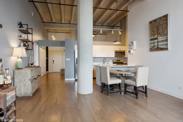 Stunning Lakeview 2 bed/2 bath home located at the Tower Lofts! Chefs kitchen features modern white cabinets, marble counter tops, breakfast bar, new stainless steel appliance and Dining area. Open floor plan perfect for entertaining. Dramatic 14 foot ceilings, exposed brick, refinished hardwood floors and fireplace. Large master bedroom with en suite and plenty of storage. In unit washer/dryer. Extra storage on the same floor. Common Roof Deck with beautiful city views. 2 attached garage spaces included! Amazing location close to transportation, target, whole foods, XSport, restaurants and everything that Lakeview and Roscoe Village have to offer!