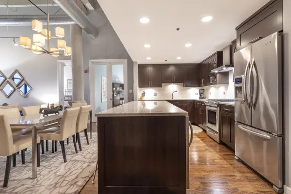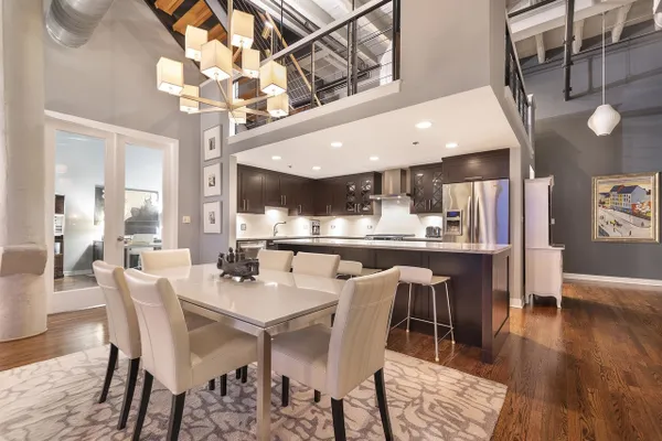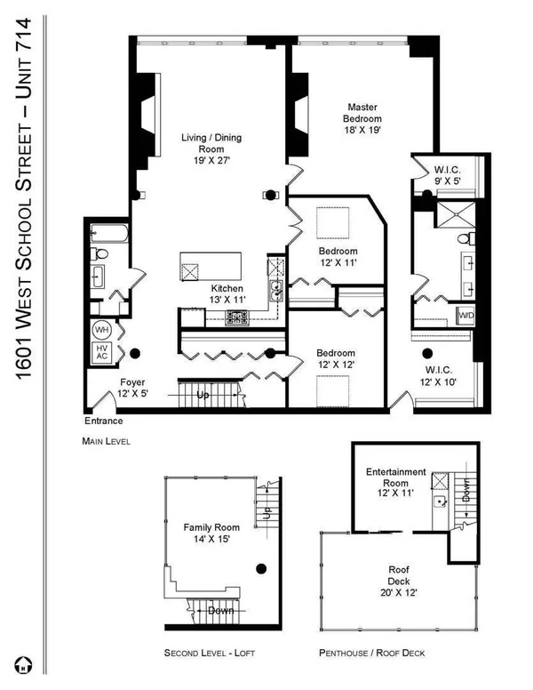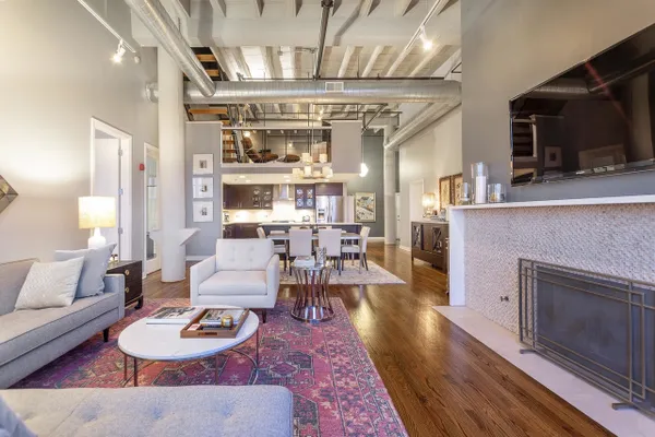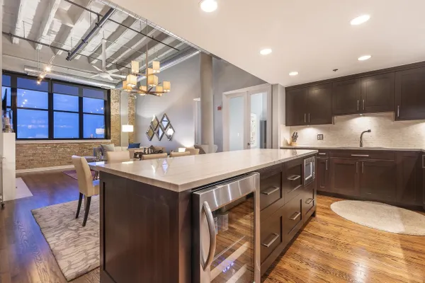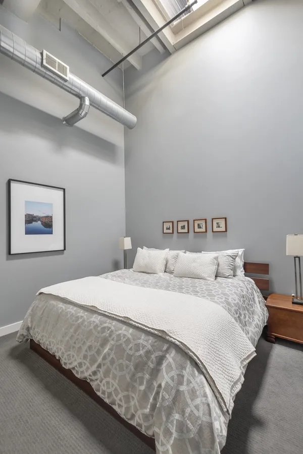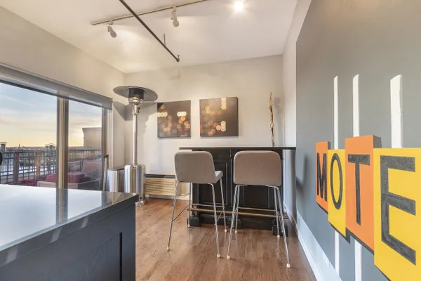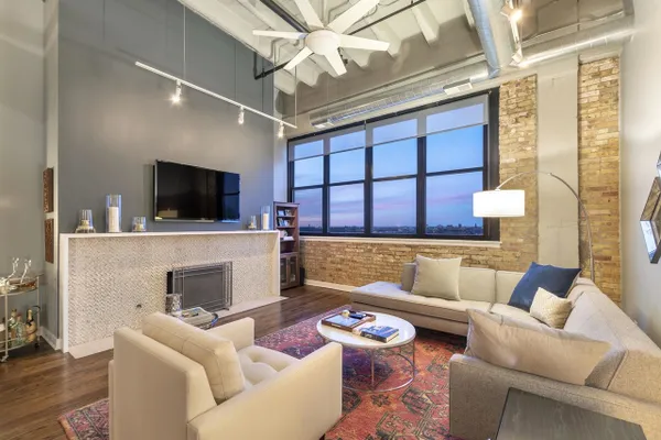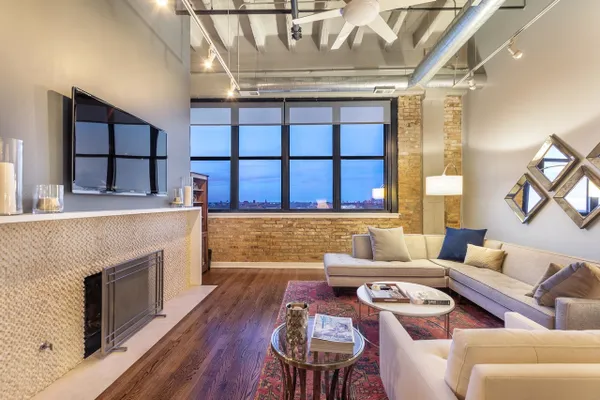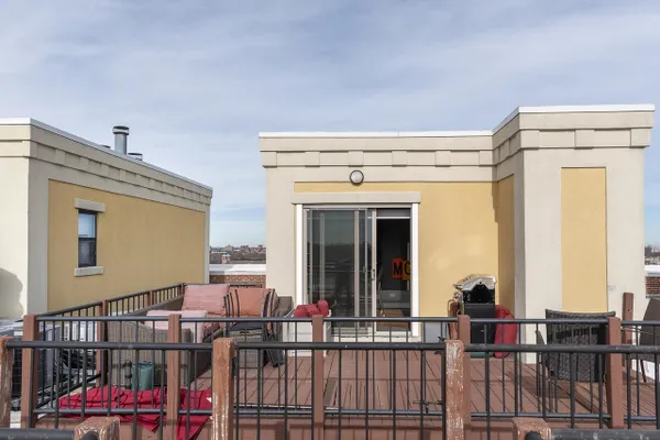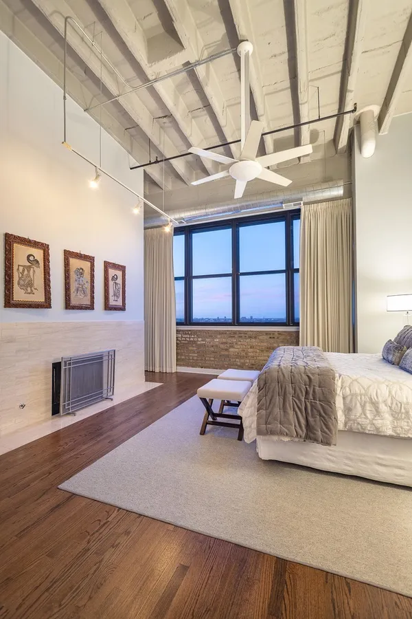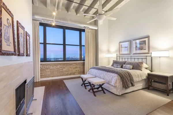 The premier unit in Tower Lofts! Combined by the developer when the building was converted to luxury condos, this penthouse-level extra-wide 3,000 sqft, 3 bedroom soft loft offers dramatic, renovated living space, private outdoor space, and two heated garage spaces. You enter this home into a foyer with generously sized closets. Ideal for entertaining, the combination living/dining room has a 16-foot cement ceiling and contemporary fireplace. Oversized windows face north offering unobstructed views of the city's north side and the lights of Wrigley Field. The living area is open to a chic, newly renovated kitchen. There are three, fully enclosed bedrooms including a large master with dual walk-in closets and a spa bath. The second bath doubles as a powder room. Stairs lead up to a lofted family room, and again to a top-level entertainment room with wet bar and rooftop deck with panoramic city skyline views. This home offers an ideal lifestyle as everything you need is within a couple of blocks. Commuting is easy with the Paulina Brown Line station close by. On your way home, pick up dinner at the mega Whole Foods at Ashland and Belmont, and you'll never miss a workout with X-Sport Fitness in the same building. Tower Lofts is pet-friendly. Amenities include a secure lobby with key fob access, a passenger elevator, and storage.